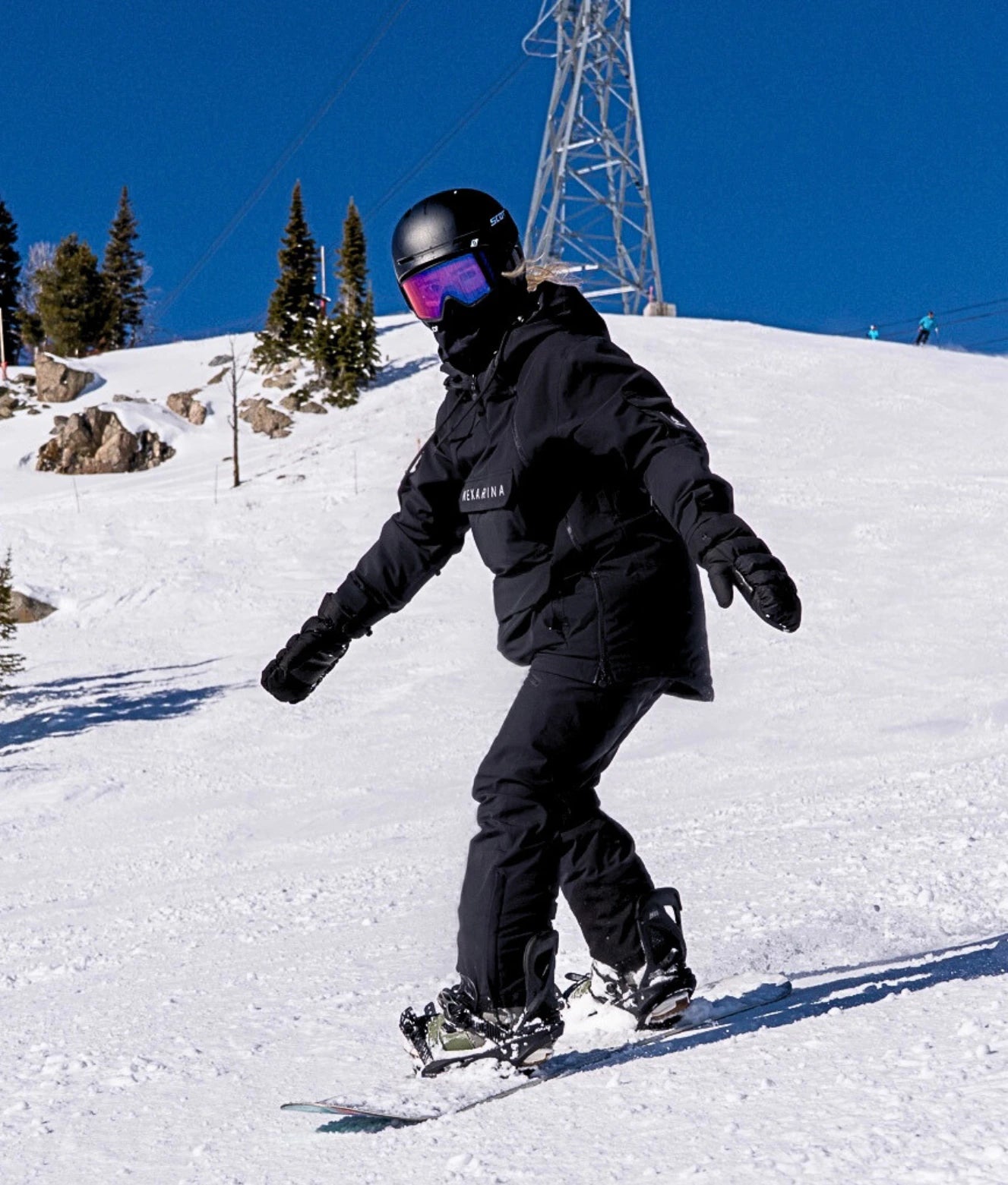 • Protection: Snow skirt, wrist gaiters, helmet-compatible hood